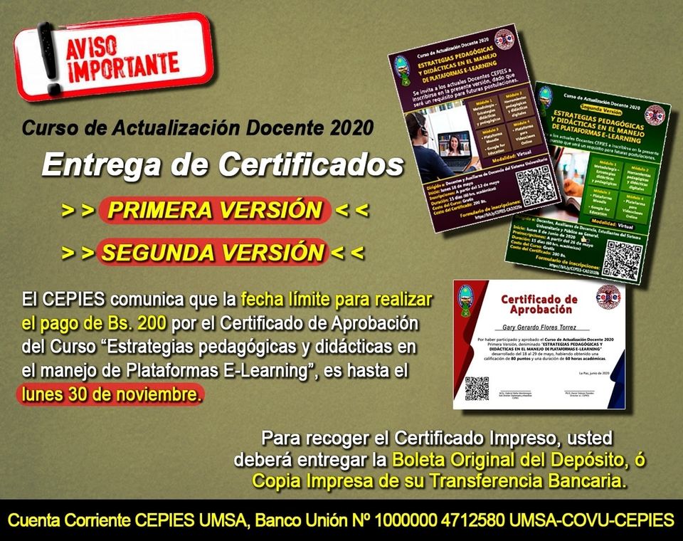 -Llenar el siguiente formulario para registrar su pago y formalizar su solicitud de certificado: https://bit.ly/EntregaCertificadosCAD-1V