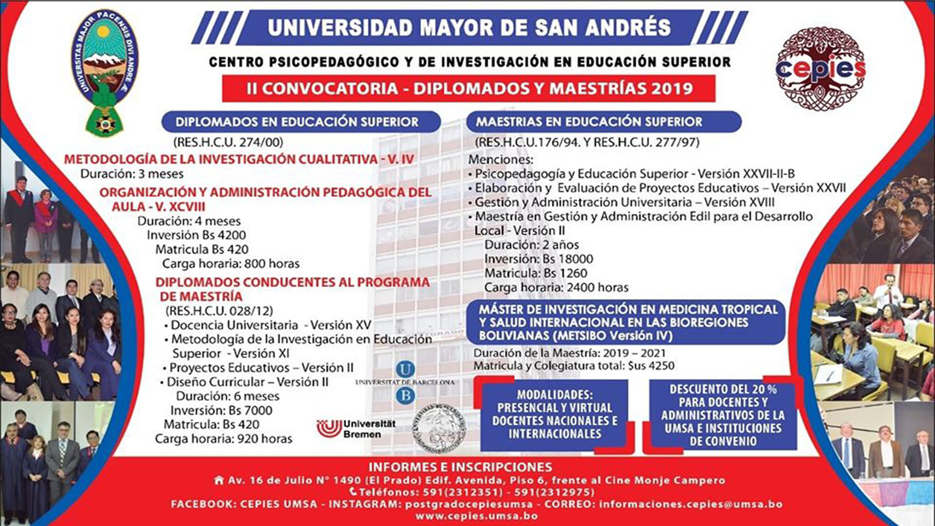 II Convocatoria Diplomados y Maestrías 2019 - CEPIES
