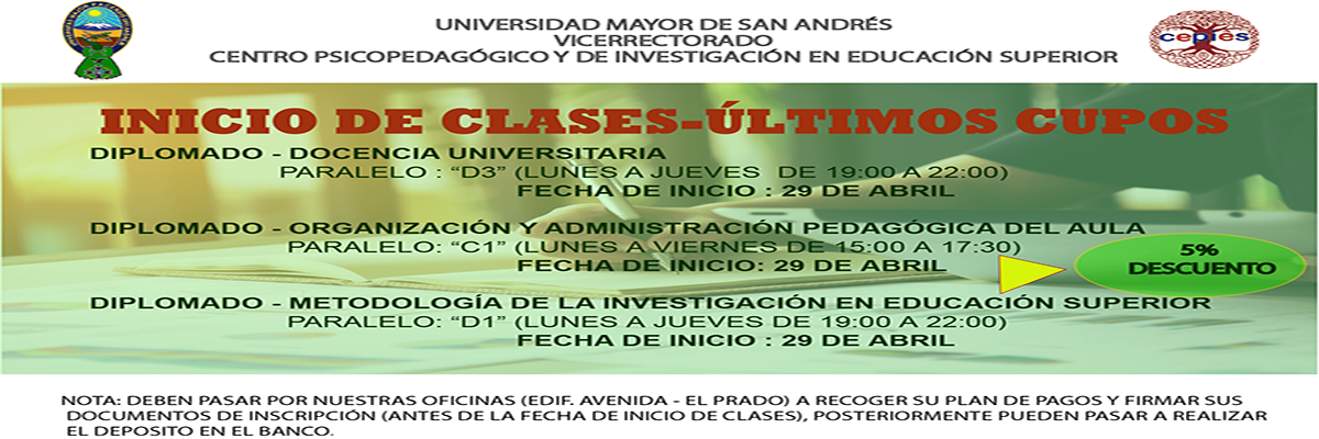 Se informa a la comunidad estudiantil el inicio de clases de los diplomados de docencia universitaria y OAPA.