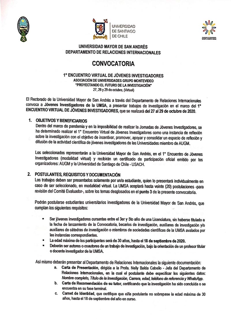¡Tú puedes ser uno de los 4️⃣ jóvenes investigadores que representarán a la Universidad Mayor San Andrés en el evento!