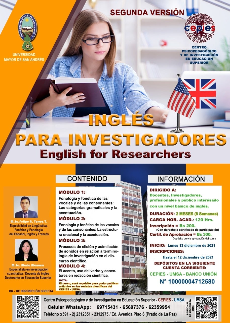 EL_CEPIES_UMSA DECANO EN LA FORMACIรN DE POSGRADO EN COORDINACIรN CON SU DEPARTAMENTO DE INVESTIGACIรN TE INVITA A PARTICIPAR DEL CURSO โ๐๐ก๐๐๐๐ฆ๐ ๐๐ข๐ฅ ๐ฅ๐๐ฆ๐๐๐ฅ๐๐๐๐ฅ๐ฆโ INGLรS PARA INVESTIGADORES รNICO EN BOLIVIA โฆPOR TIEMPO LIMITADOโฆACCESIBLE A TODO PรBLICO.