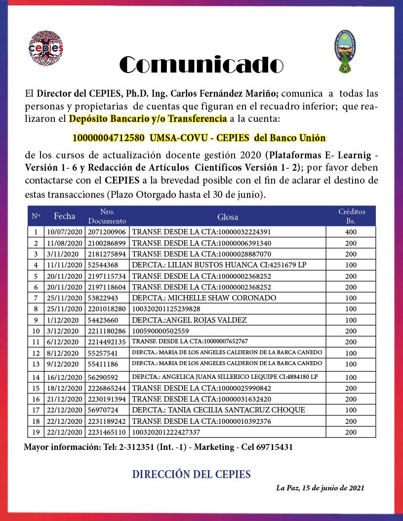 Comunicado para las personas que realizaron los Cursos de Actualización Docente gestión 2020.