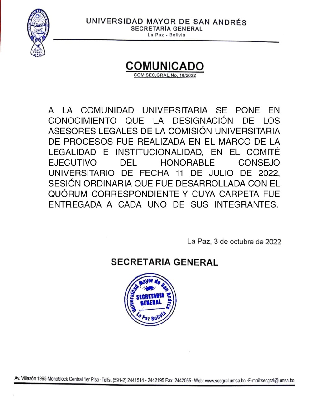 En esta sección encontrarás comunicados informativos de la Universidad Mayor de San Andrés, entre ellos temas; académicos, administración, resoluciones e información de interés para nuestra Comunidad Universitaria.