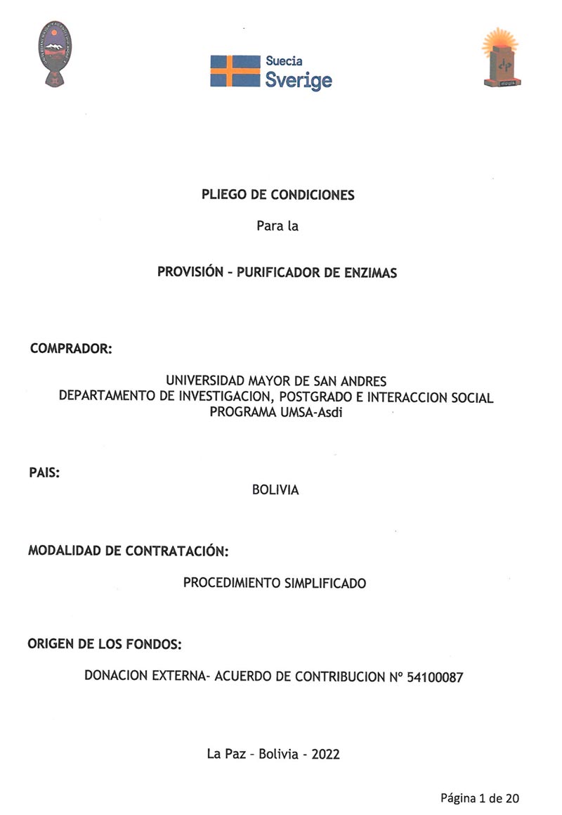 DIPGIS - PLIEGO DE CONDICIONES PARA LA PROVISIÓN – PURIFICADOR DE ENZIMAS