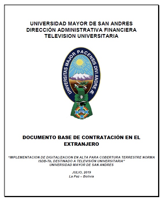 En el marco del reglamento específico de contratación de bienes y servicios en el extranjero de la universidad mayor de san Andrés, televisión universitaria de la paz – Bolivia, convoca a las empresas y/o fabricas legalmente constituidas en el extranjero a presentar sus propuestas de cotización para el proceso de adquisición tvu – ext 001/2019